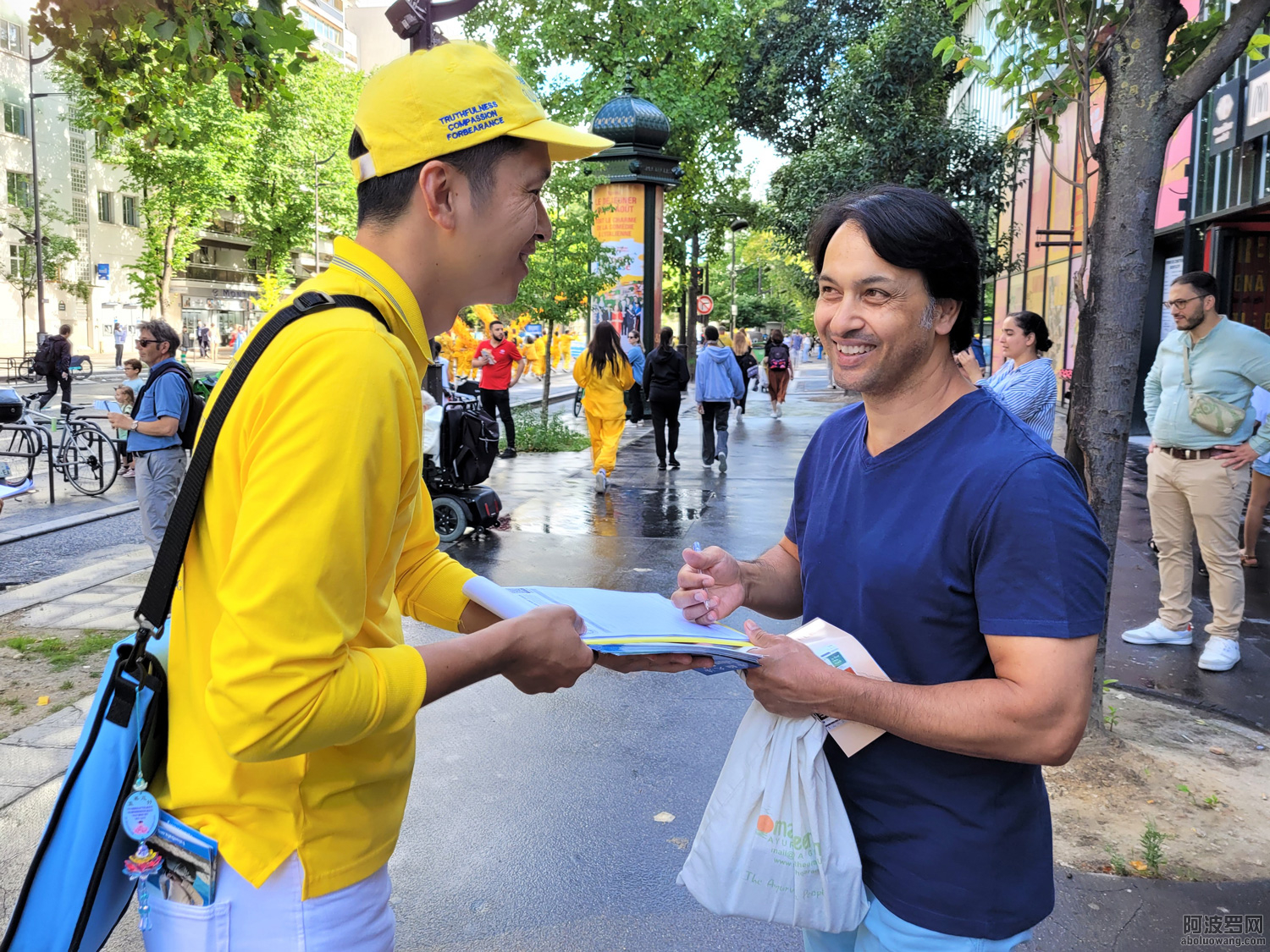 他一次开车路过公园,看到一群男女老少正在炼功健身,横幅上真善忍三个大字让其非常的心动。