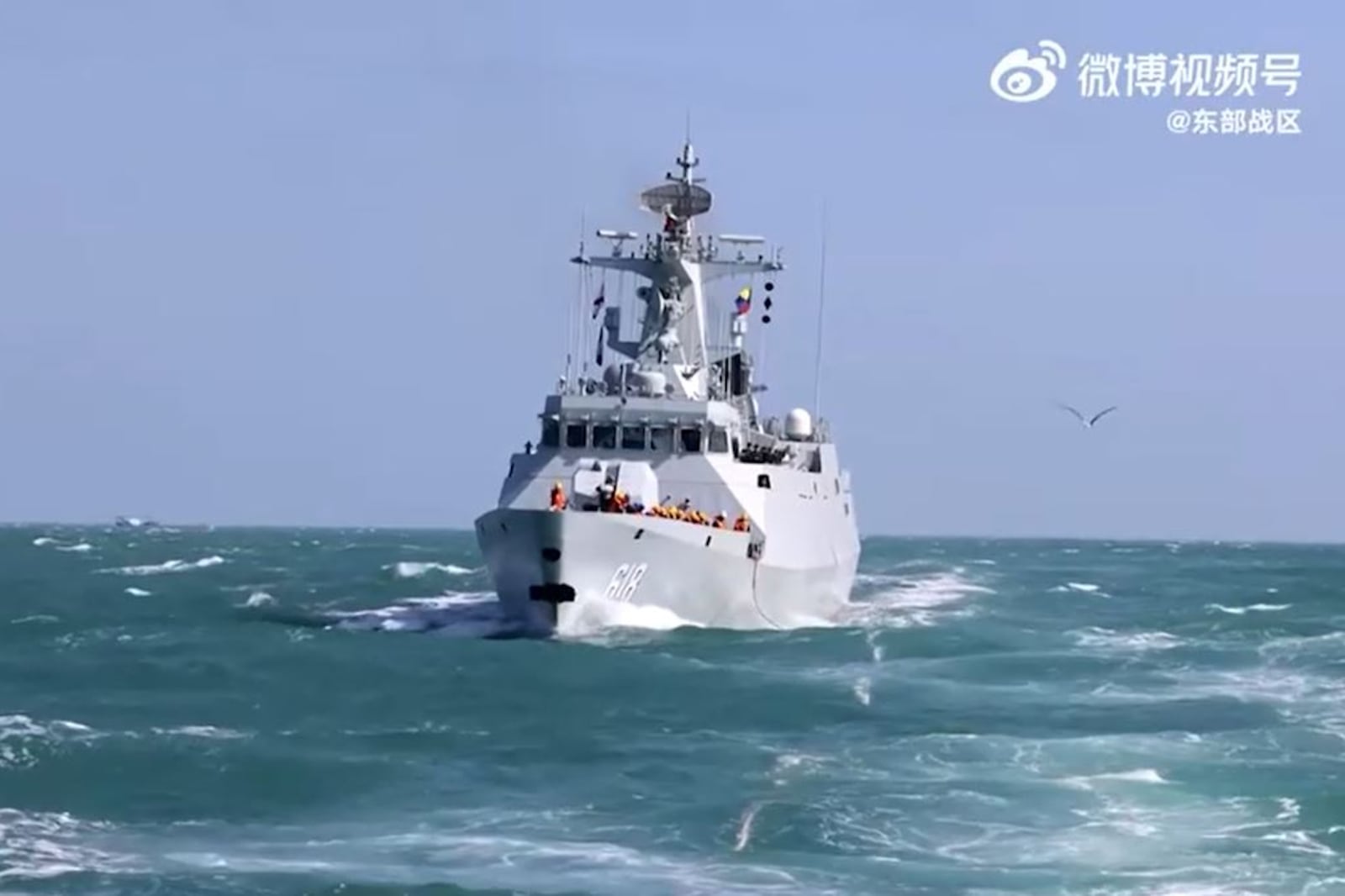 中国军方2月27日发布了一段视频,显示军舰在海上某未确定地点执行任务并进行演习。 (视频截图:路透社/解放军东部战区)