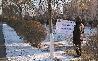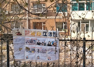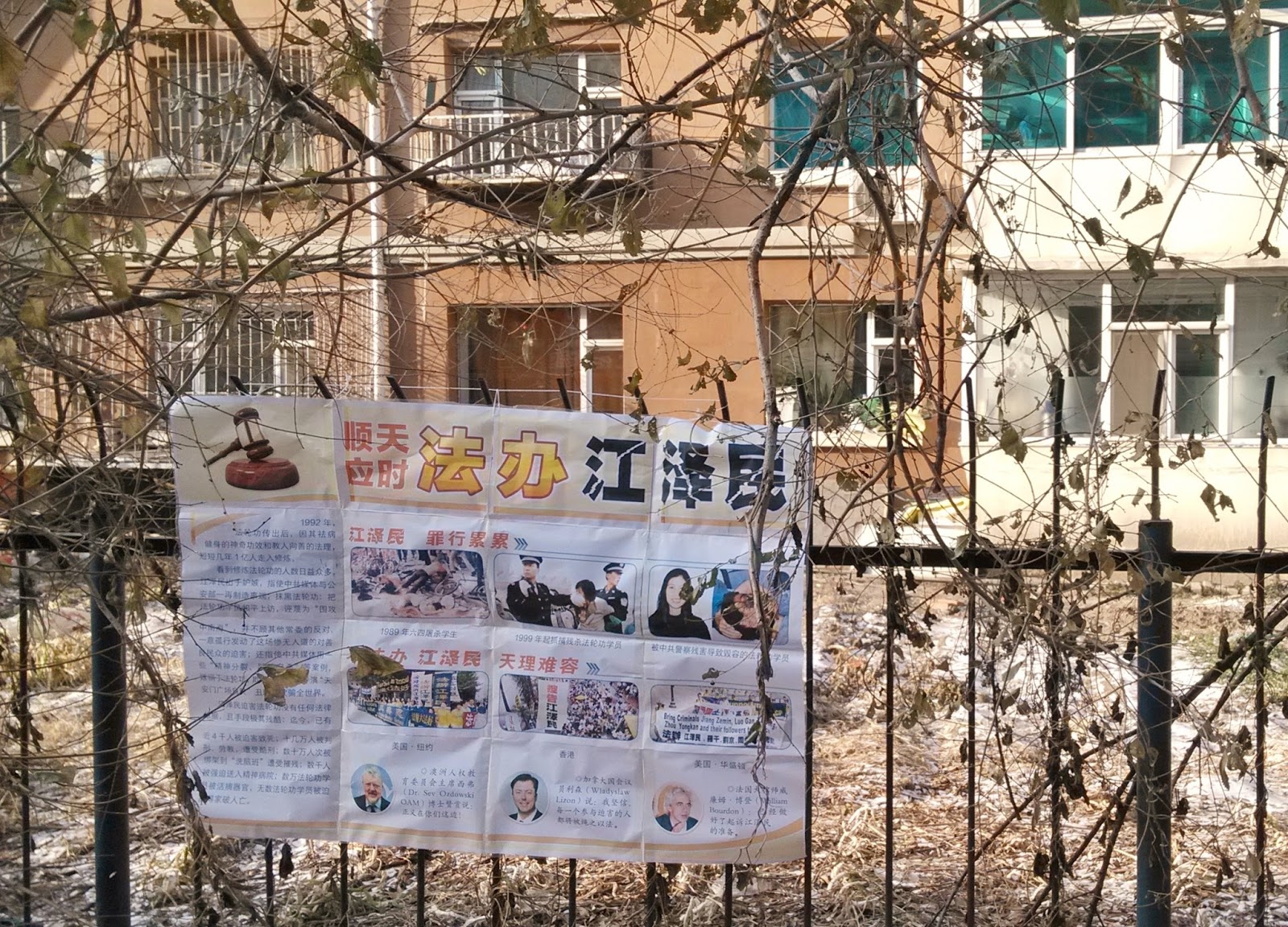 以下圖片爲2015年長春街頭、伊通河畔出現訴江展板(圖片來源:明慧網)