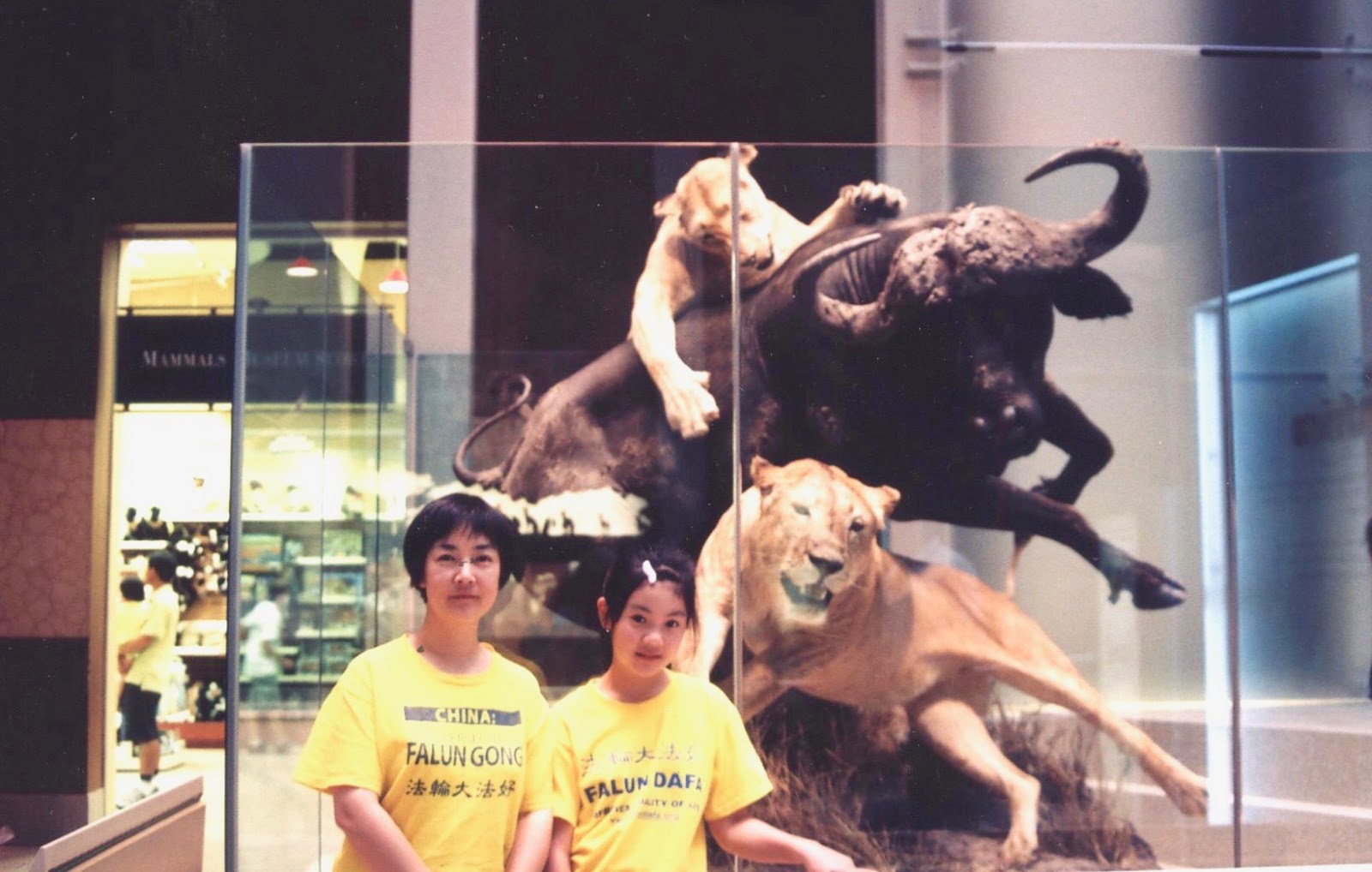 曾錚與女兒2004年7月在參加法輪大法修煉心得交流會期間攝於美國華盛頓國家自然歷史博物館。