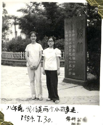 The girl with me in these two photos was THE best friend of mine in primary school. Her name was Rong. Other than my parents, she was the one who influenced me most, and was almost a mentor for me in many ways. 這兩張照片是我與兒時最好的朋友蓉的合影。除父母外,她对童年的我影響最大,從許多方面講,她都起到了啓蒙的作用。 I remember she only transferred to our school when we were already in grade 4. She was assigned to sit at the same desk with me. 我記得她是小學四年級時從別的學校轉來的,老師安排她與我同桌。 At that time I had almost no friends at all in school. My father was relocated to that remote small town as a “black pawn of reactionary capitalist-roader” during the Great Cultural Revolution. Intellectuals were regarded as the Communist Party’s enemies; and our family was almost the only intellectual family in the town. In order not to get ourselves into more trouble, my mother didn’t encourage me to play with other kids. If I became involved in a fight, it could be interpreted as a “class struggle” and bring us disastrous consequences. 到那時爲止,我在學校裏幾乎沒有任何朋友。我父親是因文革中被打成「走資派的黑爪牙」而被發配到我當時就讀的小鎮——四川綿竹縣漢旺鎮的。知識分子是黨的敵人;而我們家当时幾乎是小鎮上唯一的知識分子家庭。爲了不惹麻煩,母親不鼓勵我跟其他小朋友玩,因爲小孩子之間一旦打起來,搞不好就會被「上升」为「階級鬥爭」,從而讓一家人的日子更加難過。 However, Rong was somehow different from other children. Her father was the principal of the middle school in our town, so I instinctively regarded her as my own “class”, and felt safe to be with her. Gradually, we became good friends. 不過,蓉來了後,事情慢慢有了變化。她父親是漢旺中學的校長,我本能地覺得她跟我算是「一夥」的,都是「臭老九」階層,大家氣質上也比較接近,這樣我們渐渐成了無話不談的好朋友。 More importantly, she had so many wonderful books! During cultural revolution, almost all literary classics were burnt as “poisonous weeds”. Other than those boring text books with only essays to praise “our Great Leader Chairman Mao” and the party, we had nothing else to read whatsoever. 更重要的是,她家有好多好多好看的書!文革期間,幾乎所有的中外文學名著都被當作「毒草」燒掉了。除了面目可憎的歌頌黨和「偉大領袖毛主席」的教科書之外,我們沒有任何其他讀物。 Rong’s coming changed everything! Her father had somehow managed to hide and keep a wealth of banned books, including “Journey to the West”, “A Dream of Red Mansions” and many fair tale books translated from foreign languages. 蓉的到來改變了這一切!她父親不知用什麼辦法,保留和保藏了許多應被當作「毒草」燒掉的禁書,比如《西遊記》、《紅樓夢》這樣的古典名著,還有好多好多外國童話書。 One by one Rong “stole” those books from home, brought them to school and shared them with me. 蓉跟我熟了後,慢慢將這些書一本一本從家中偷出來帶到學校,與我一起偷偷看。 In order to “squeeze” out time to read the books, we later learned how to pretend to have stomachaches or other problems when we had PE lessons. And we became very good at it! So when other kids were doing PE on the playground, we two stayed in the empty classroom and secretly read our forbidden and “stolen” books. 爲了擠出時間和空間看「禁書」,我們慢慢學會了在上體育課時裝病,比如裝肚子疼之類的,還裝得越來越像。這樣,當其他同學都到操場上去跑步時,我倆則留在空無一人的教室裏「偷著樂」。 We also tried to sneak out when everybody else was taking a nap at noon. We would usually hide in the farm land where the crops were very tall. If we sat on the ground and hid inside, nobody could see us from outside. Although it was terribly hot, especially in summer, we didn’t mind. Compared with the tremendous happiness we gained from the books, the hardships of reading under the baking sun with streaming sweat was nothing. 另一個可以偷跑出來的時間是在其他人睡午覺的時候。我們一般都跑到莊稼地裏藏起來。比如被留著結菜籽的萵筍,長得有半人高,我們坐在地上貓著腰藏身其間,外面的人根本看不見。夏天日頭高高地掛在天上,密不透風的莊稼地裏,其實是很悶熱難受的。但禁書帶給我們的樂趣,讓我們滴著豆大的汗珠卻仍然甘之如飴。 It was under such circumstances that I read “Journey to the West”, “A Dream of Red Mansions”, “Andersen’s Fairy Tales”, “Grimm’s Fairy Tales”, etc., for the first time as a fourth-grader. 正是在這樣的情況下,我在小學四年級時第一次似懂非懂的看了《西遊記》和《紅樓夢》等半文言古典名著;《安徒生童話》和《格林童話》等「小孩書」,更是百看不厭。 For me, those were the happiest times throughout my childhood. The banned books opened my eyes and led me into so many wonderful worlds where fairies, princesses, princes, gods, Buddhas, Bodhisattvas, etc., existed. Although the Communist Party wanted to wipe out our traditions and take away our beautiful things, my innocent heart somehow found a way to connect myself with other and better worlds through those wonderful banned books. 對我來說,那是童年時代最快樂的時光。一本又一本的禁書打開了我的眼界,帶我進入了王子與公主,精靈與神仙,佛祖與菩薩的世界。共產黨想打掉我們的傳統,毀掉我們所擁有的美好,而我童真的心自行尋路,找到了與那些世界聯結的「祕密通道」。 About 20 years later, when I read “Zhuan Falun”( http://en.falundafa.