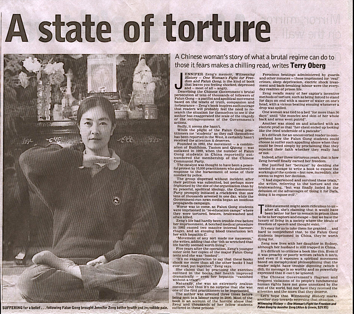 Jennifer Zeng’s memoir, Witness History-One Woman’s Fight for Freedom and Falun Gong, is the kind of book that leave you feeling shocked, depressed and-most of all-angry.