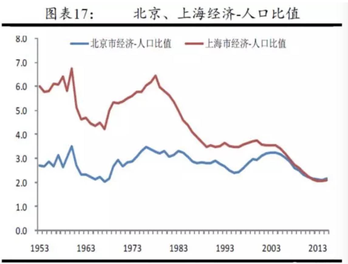 那么今天的北京上海“经济-人口比值”是多少呢?