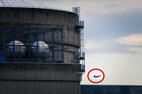 超人形状的无人机撞向法国布格伊核电站 视频截图