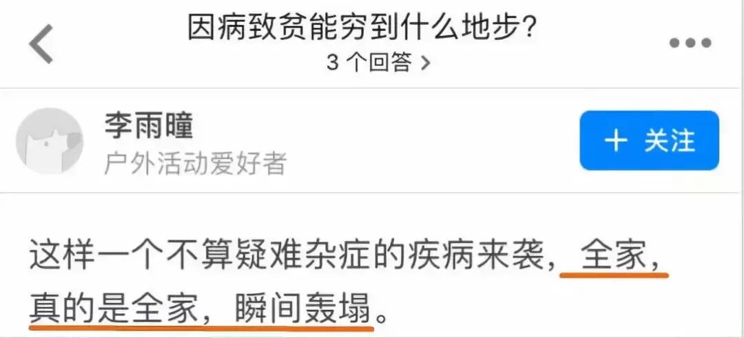 老中小三代人,一人重病,全家连坐。即使多年衣食无忧,大病面前,都可能一夜回到解放前。