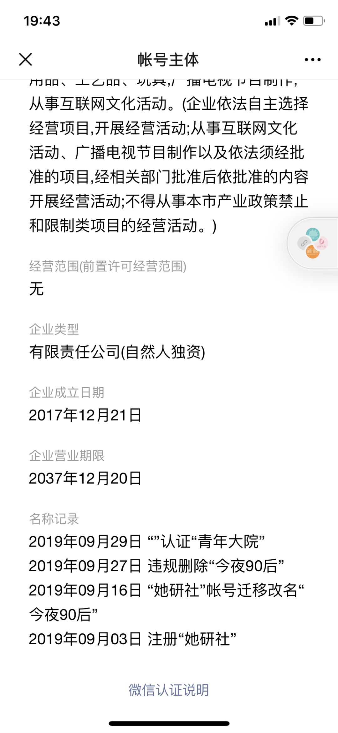 被大火焚毁的漠河县城 贾永说,他们之所以冒着危险、顶着困难坚持了下来,是“为了维护人民群众了解社会重大事件的知情权利”。功夫不负有心人,“越来越多的原来慑于某些人淫威而敢怒不敢言的灾民向我们敞开心扉直陈真情。” 后来曾获范长江新闻奖的记者叶研回忆,他们在旅游局招待所餐厅拍下一些人大吃大喝的场面,结果被以县旅游局局长为首的20多人拦住了去路。几位记者被围殴。“打人的没事儿,我们倒被叫到公安局问了两天。” 在现场奔波了一个多月后,记者们才结束采访回到报社写稿。《中国青年报》的回忆文章中透露:那时正是北京最热的时候。“雷收麦和贾永住在中国青年报社附近3角5分钱一晚的地下室里,总共吃掉了40多袋方便面。为防止闹肚子,贾永还用5斤粮票,换来一辫子大蒜。” 四 发表《没有澳洲这场大火,我都不知道中国33年前这么牛逼!》一文的公号,叫做“青年大院”。 其实,它是之前一个因为失实而被封号的大号的新马甲。 只要点击“青年大院”的公号名字,进入其详细资料页,我们就可以看到:它的帐号主体是“北京浮光跃金文化传媒有限公司”。