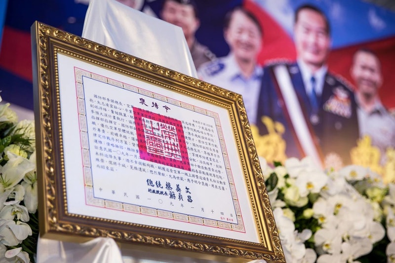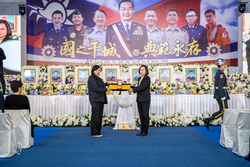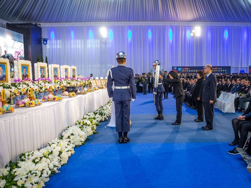 1月14日,蔡英文胜选后以“国葬”规格,高调举办台湾参谋总长沈一鸣等死者悼念仪式。(台湾国防部)