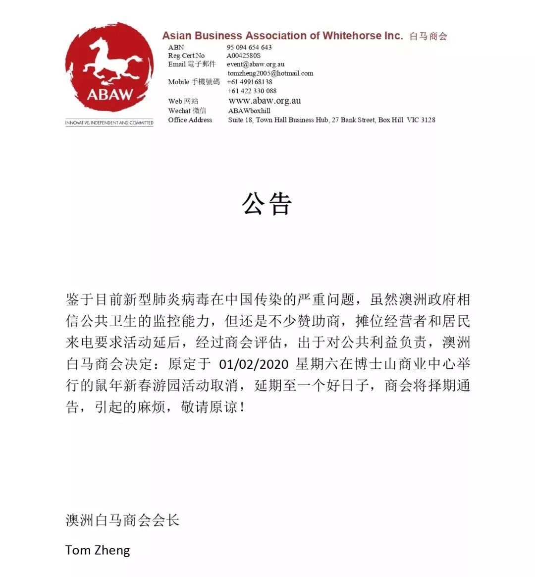 同时,Sharon也表示对于新春活动的任何决定,例如取消,甚至是演讲嘉宾、受邀名单基本上取决于白马亚洲商业协会(Asian Business Association of Whitehorse ABAM)。