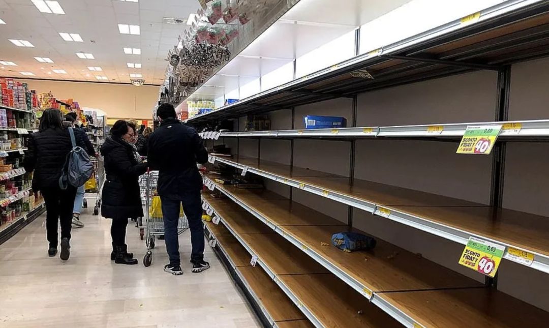 面对疫情的迅速蔓延,慌张的意大利人也纷纷开始抢口罩和广屯粮。