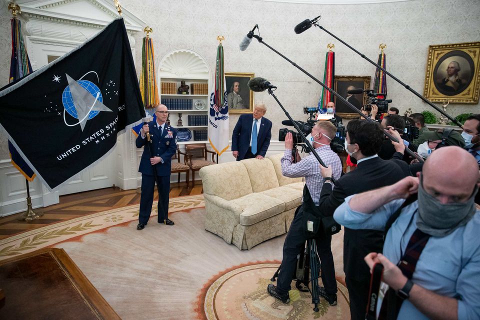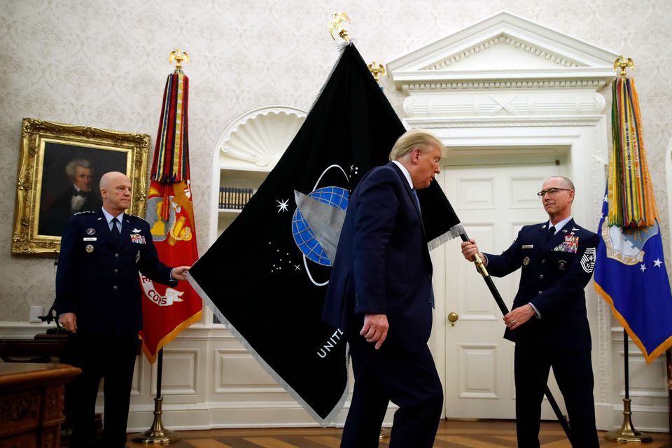 2020年5月15日,美国总统特朗普(Donald Trump)在白宫主持了太空军军旗亮相仪式。(AP)