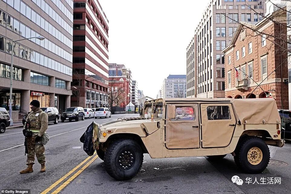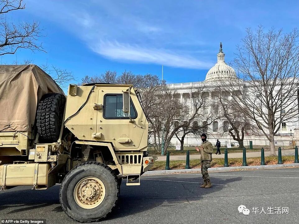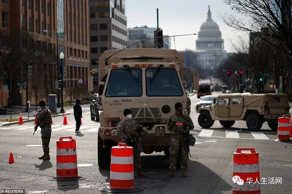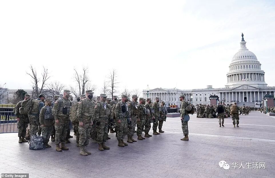 目前,华盛顿DC已经有7000名国民警卫队守卫国会大厦,而新总统拜登的就职典礼当天(1月20日)还将有1.8万国民警卫队加入。