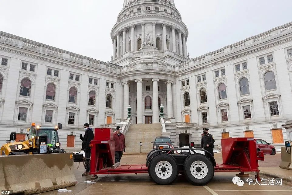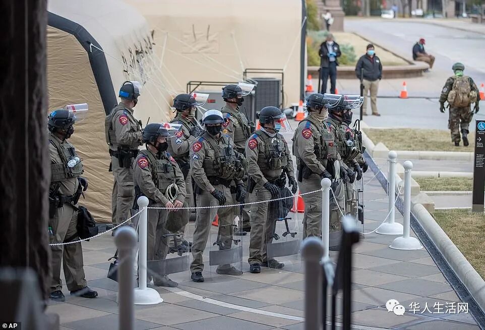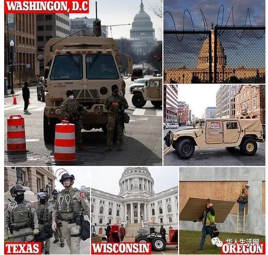 但目前除了举行全美就职典礼的华盛顿DC外,全美50个州的所有议会大厦都处于戒备状态!