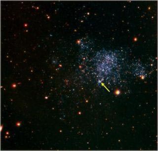 俄亥俄州立大学何塞·普雷特等人在报告中说,这个“大花生”位于距地球大约1200万光年的一个小型星系中。两个恒星均呈黄色,质量均为太阳的15倍到20倍,看上去几乎一模一样。由于距离极近,二者甚至共享大量恒星物质。