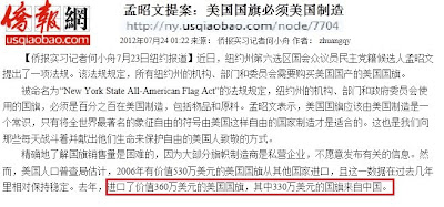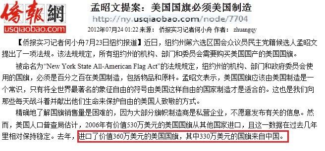 在这个议案中,孟昭文明确指出:“美国每年进口价值360万美元的美国国旗,其中330万美元的国旗来自中国。”给你美国生产一些美国国旗,她孟昭文也要反对。这分明是在同中共叫板叫阵嘛!