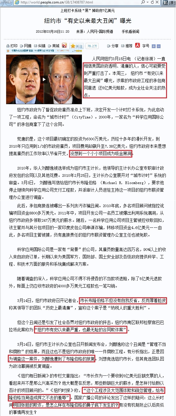 附录4.3给出的中共喉舌《人民网》的文章,不遗余力的炮轰纽约市长彭博(布隆伯格),为刘醇逸鸣冤叫屈,树碑立传。