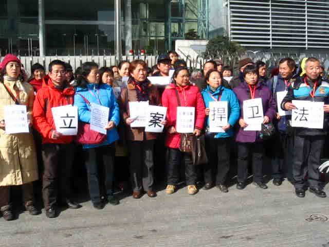 为了完成《联合国中国公民控告团》所肩负的重要使命,赵岩也发动他在国内的下线们同他密切合作。这些人包括冯正虎、李柏光、沈佩兰,等等。冯正虎在国内提出的上访诉求就是“还我诉权”,这同赵岩的诉求如出一辙。而且冯正虎让许多上海访民都放弃他们原有的标语口号,代之以“还我诉权”为中国访民的终极诉求。下面的几个图片取自冯正虎的网站。从这些图片可见,冯正虎就是要各地访民为他去争取什么“诉权"和“立案”权。