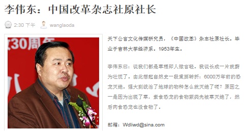 上面的文章署名是佚名。我判断是出自赵岩的手笔。这文章是借李伟东的口来评析薄熙来和王立军事件。