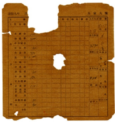 同牛世清不同,宋伟叔叔的尸体上连一张工票都不曾找到。我相信,中共统治下的中国工人,绝对没有象日本人颁发的那样帐目清楚的工资结算单。中国人的工资单就是一项,工人实拿多少。至于你创造了多少,共产党收了多少,那都是国家机密,不容你过问!
