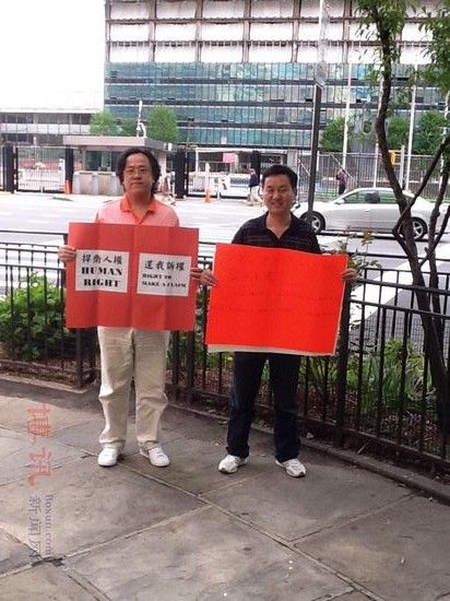 “强烈要求胡锦涛主席还我诉权! 前 New York Times 记者 Yan Zhao”。