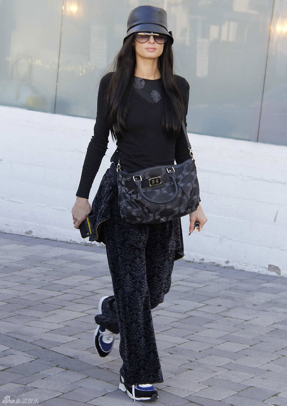 帕丽斯-希尔顿街拍LOOK 全身黑皮帽抢眼(组图) ...