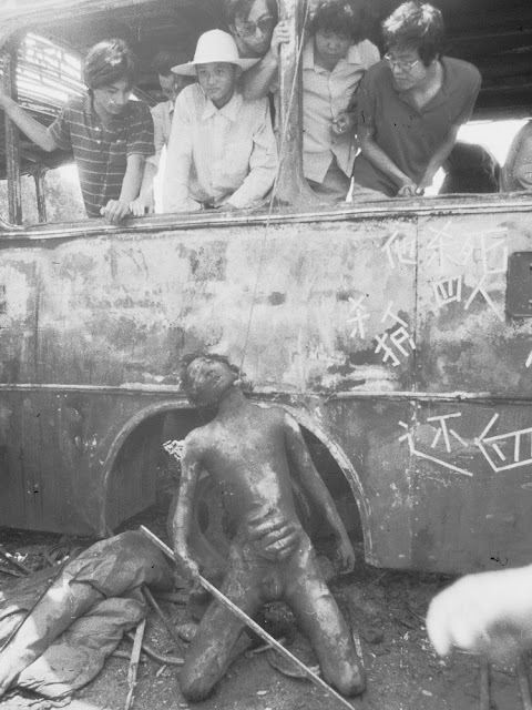 这个在西单到六部口之间的尸体却很长时间没有人收。照理说他是应该被最早收尸的,因为他是军人。然而尽管不时有装甲车从他旁边开过,却没人停下来给自己的战友一点尊严。这让人猜测是否有不收尸的命令,而如此命令的目的只能是把他当成“现场教育”的教材。街头小混混们自然不会放过这个机会,对尸体进行了百般侮辱,甚至将尸体剖腹。我看到时,已是这个样子。现场一位年轻女士激愤的喊声“他也是人啊!”至今犹在耳边。