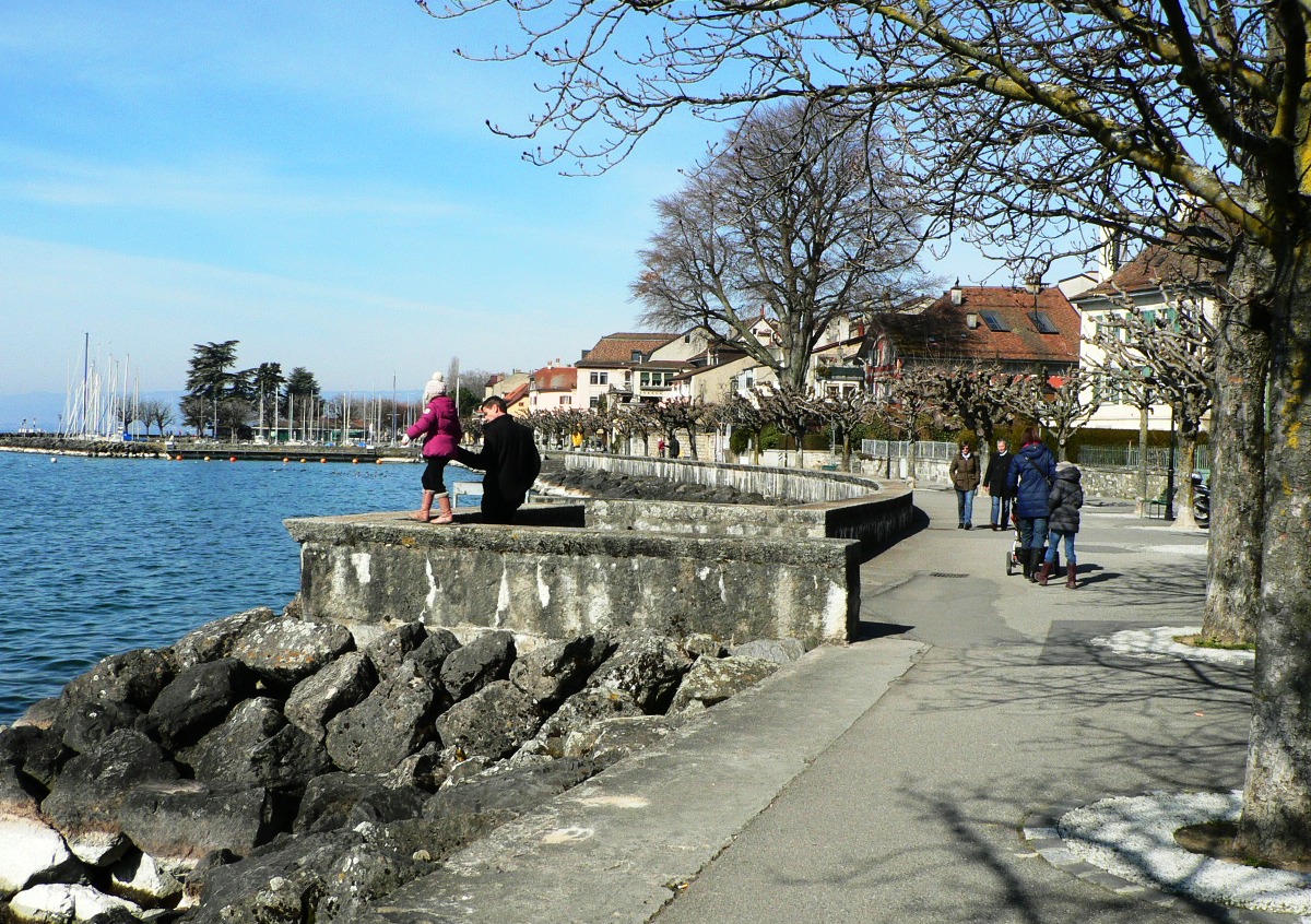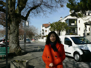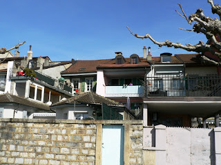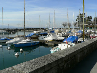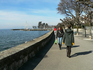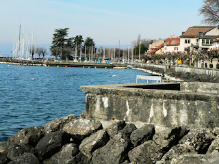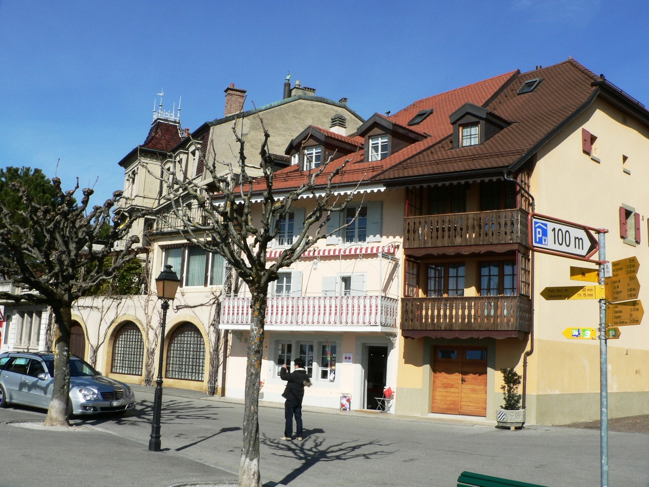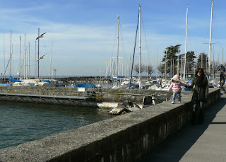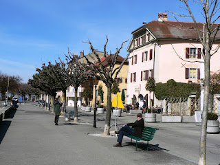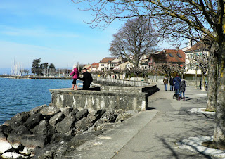 当天的行程是搭乘下午的飞机飞回伦敦。因为有一点点时间,加之Carole看我在阳台对着远山和湖水照个没完,就趁烤箱里烤着午饭的一道菜的时分,带我们到她家山脚下的这个湖和一个“村子”看看。从Carole家开车下到这里,应该只用了五分钟的功夫吧。