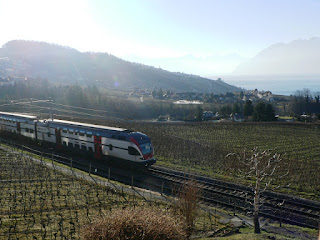 这是从阳台看出去的景色。一列火车正在驶过。长途火车在欧洲,似乎是很受欢迎的交通工具,也非常方便舒适。