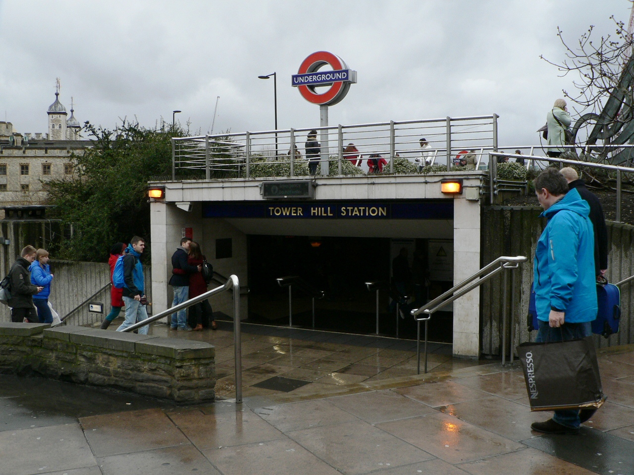 地铁站出口。因为紧临伦敦塔的缘故吧,这站就叫“塔丘站(Tower Hill Station)”。