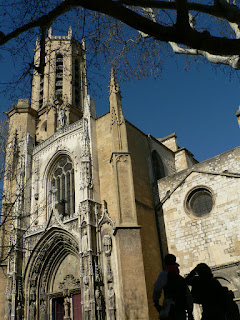 这座艾克斯主教座堂(cathédrale Saint-Sauveur),是法国的国家历史文物,也是旧城区中的一大亮点。据说它是在公元1世纪古罗马市集的遗址上,自12世纪到19世纪多次重建而成,包括了罗曼式、哥特式和新哥特式等多种建筑风格。
