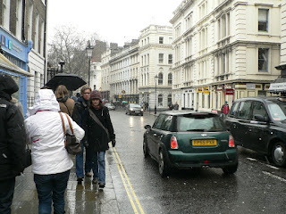 伦敦的天气,跟传说中一样,总是阴着,不是下点毛毛雨,就是来点小小雪。大概伦敦人已经习以为常了吧,所以路上有打伞的,也有不打的。