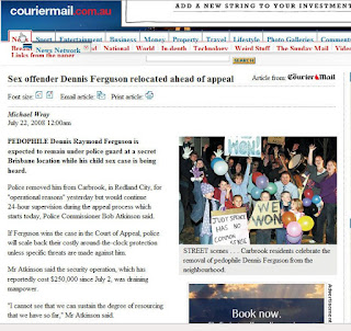 最近一段时间,澳洲大大小小的媒体都对澳洲史上最臭名昭著的儿童色情狂伏格森(Dennis Ferguson)之事进行了“狂轰”式报道,被这些报道搞得“头晕眼花”、感叹人心变坏了,麻烦真是多之余,不由得又想:在上海连杀六警的杨佳,如果能 够得到澳洲色魔伏格森一半的待遇,也不会成为今日之杨佳了!